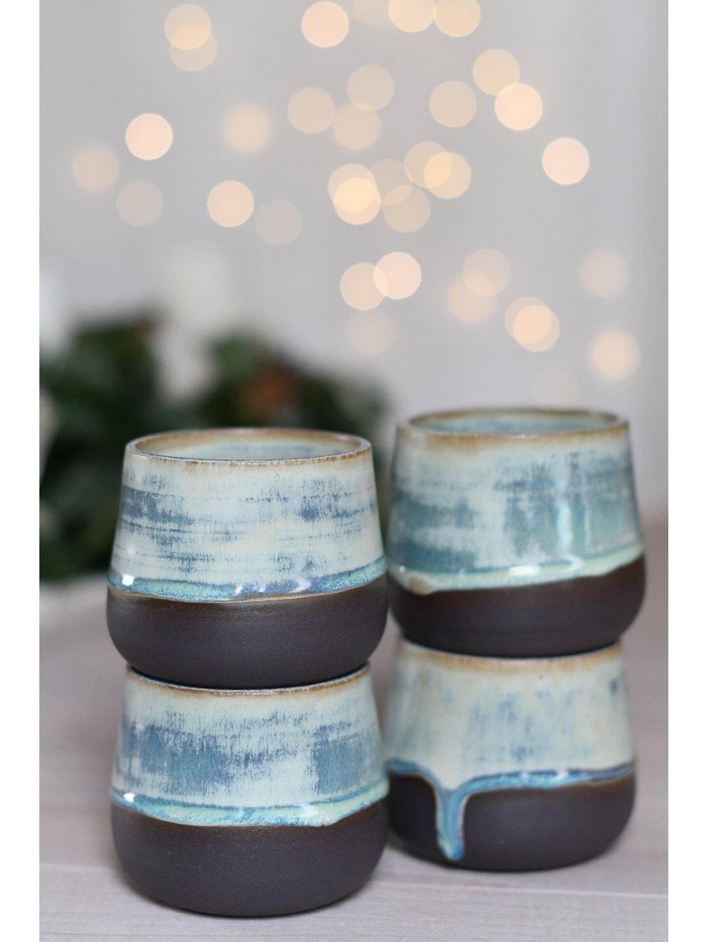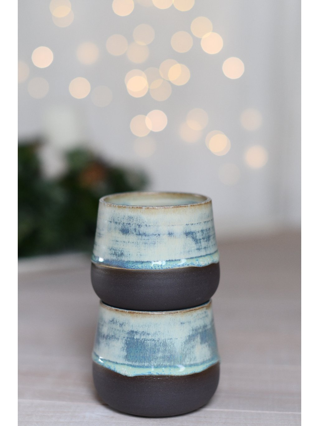 Kalíšek z černé kameniny. Točený na hrnčířském kruhu a pálený na vysoké teploty. Objem cca 250ml.